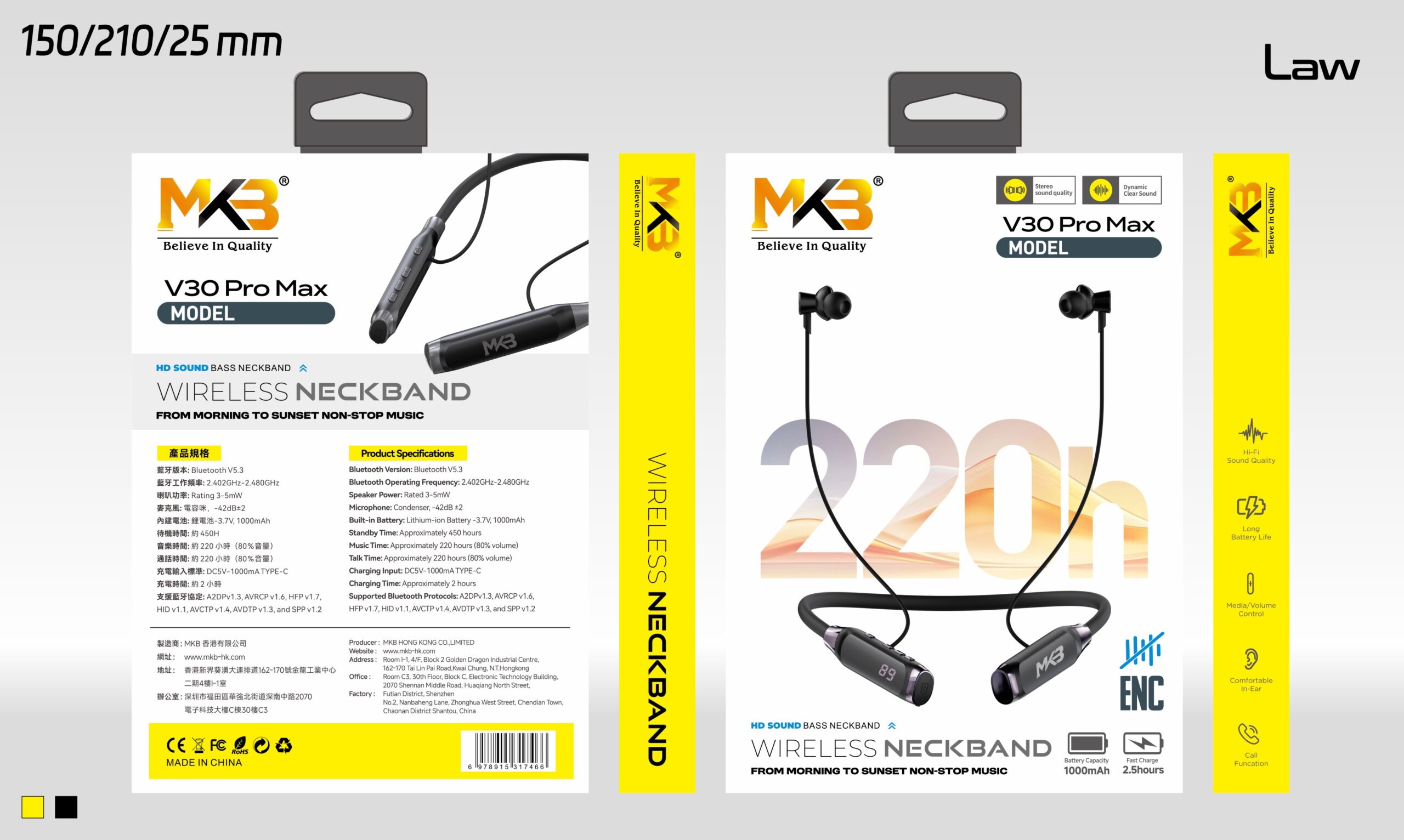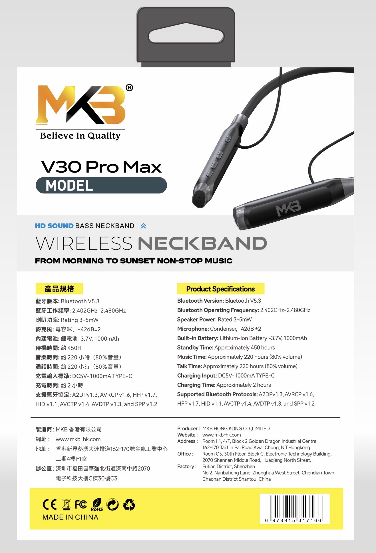 MKB V30 PRO MAX ENC WIRELESS NECKBAND . 220h